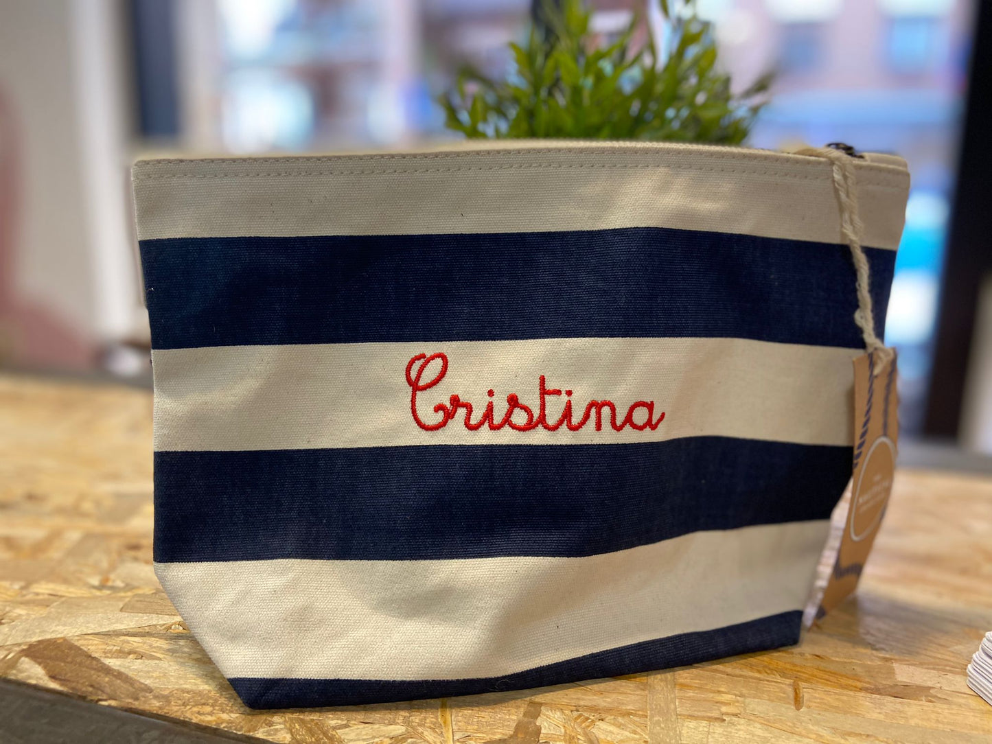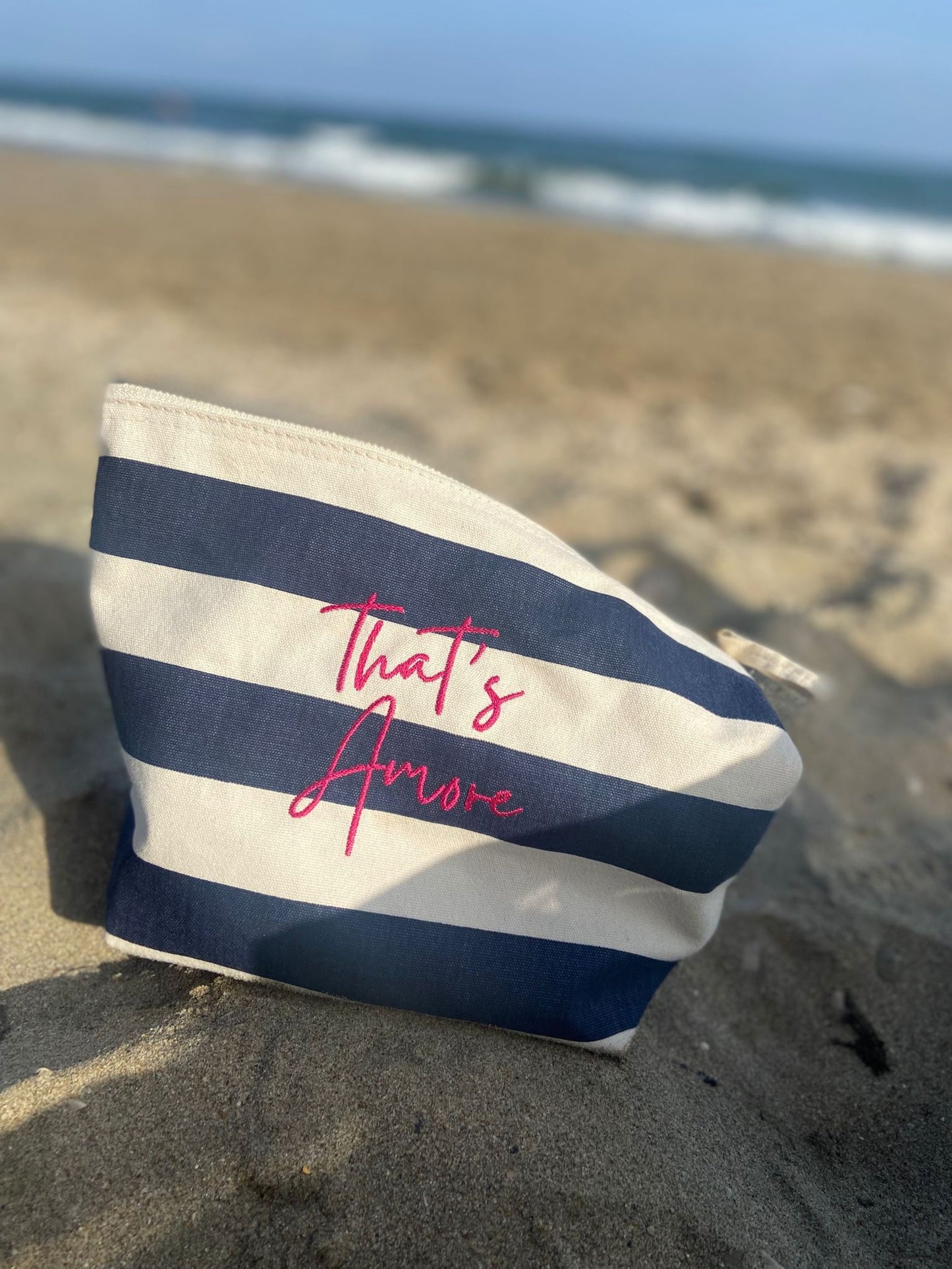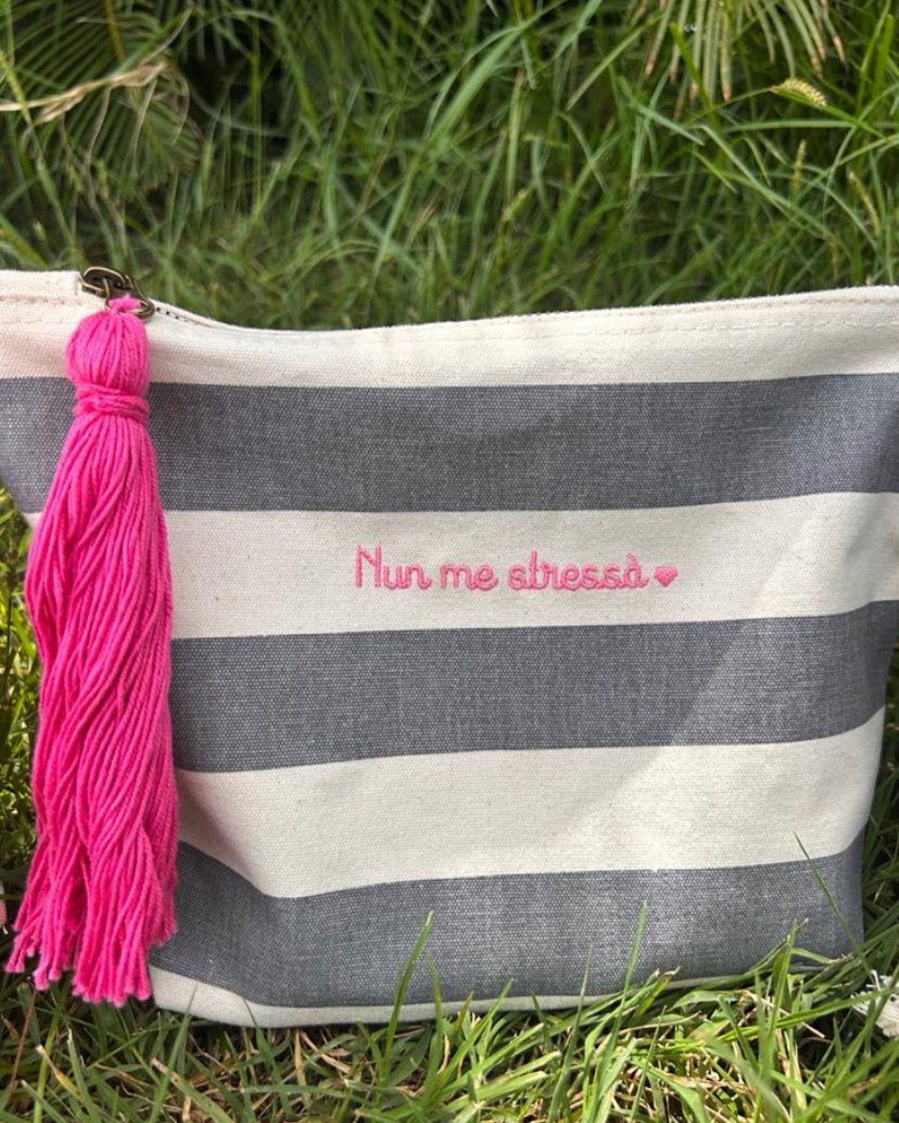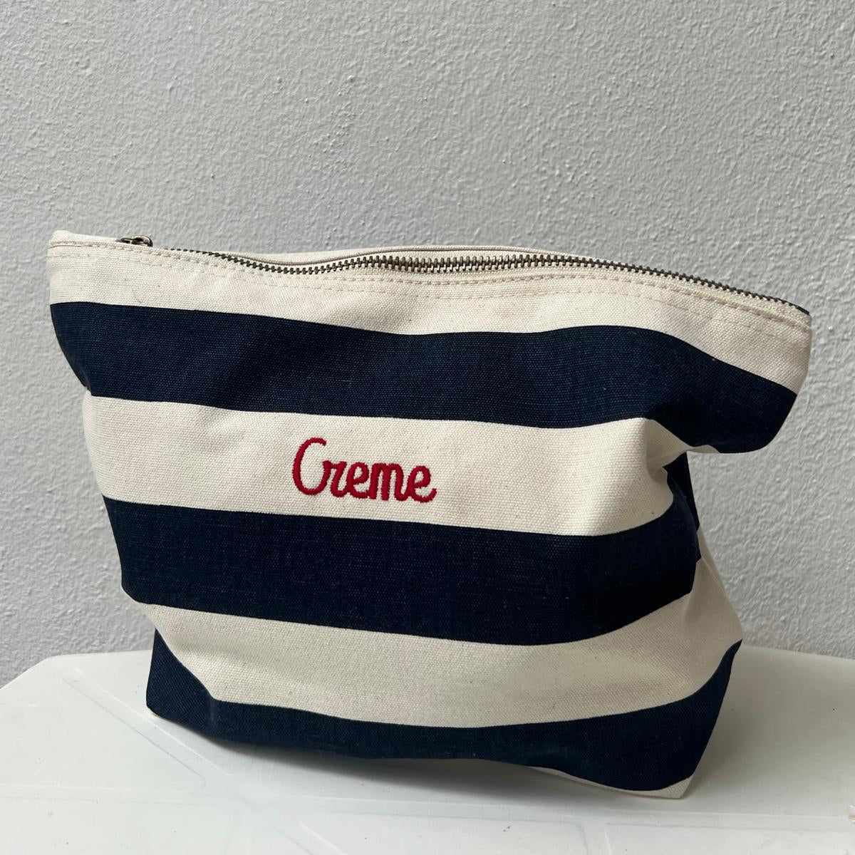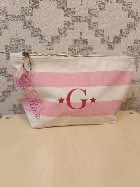 Beauty case in cotone a righe personalizzato.