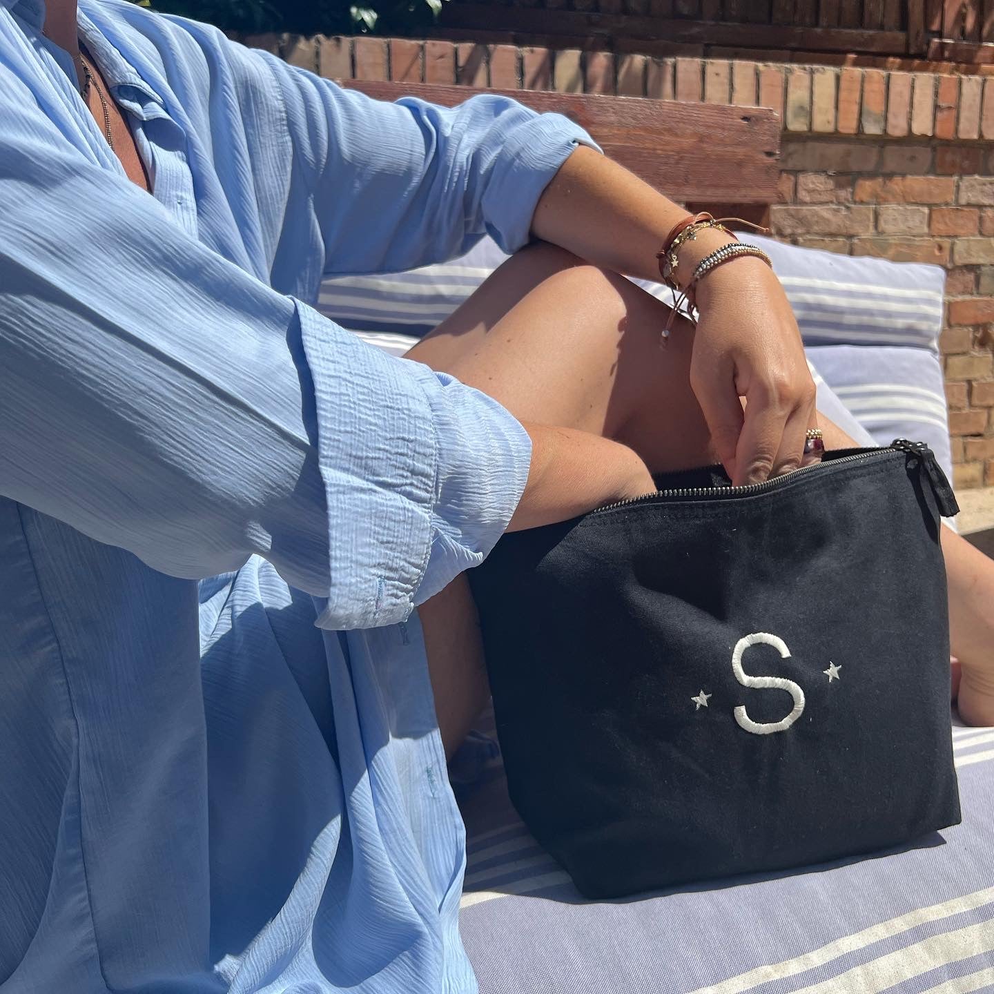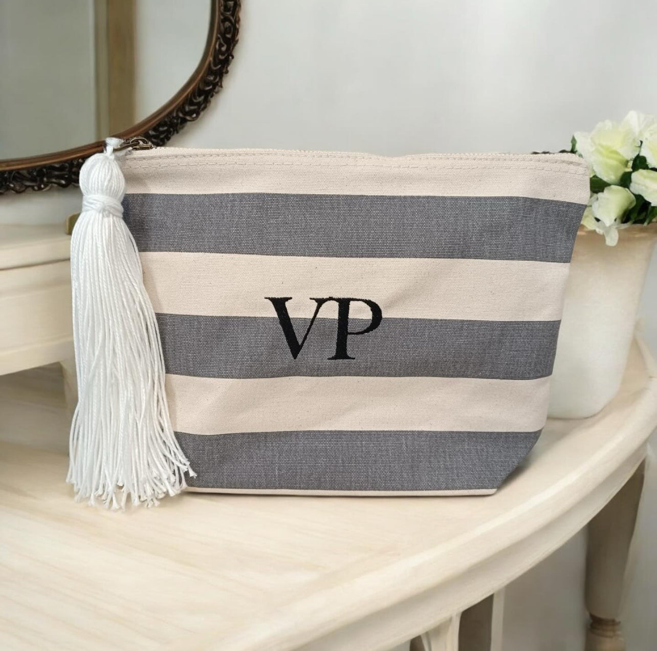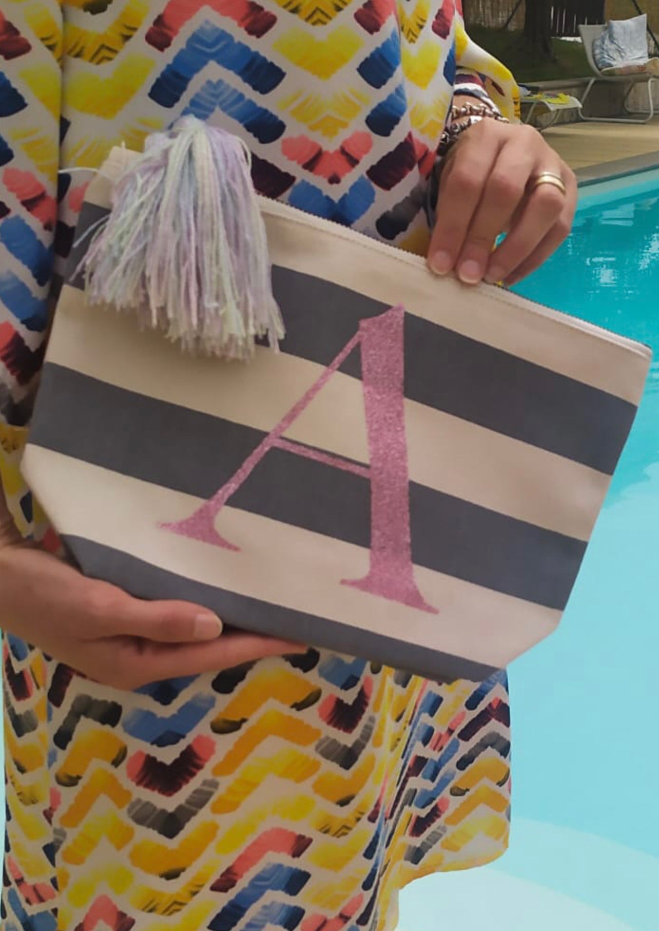 Beauty case in cotone a righe personalizzato