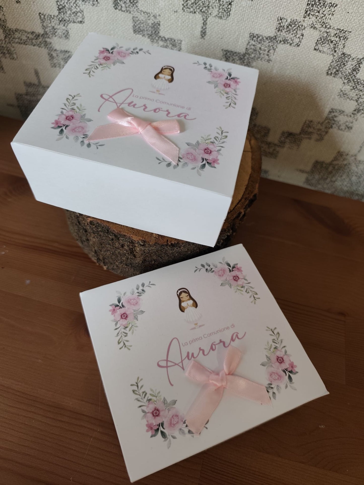 Indicare in personalizzazione, nome, testo e immagine da mettere sul coperchio della scatolina