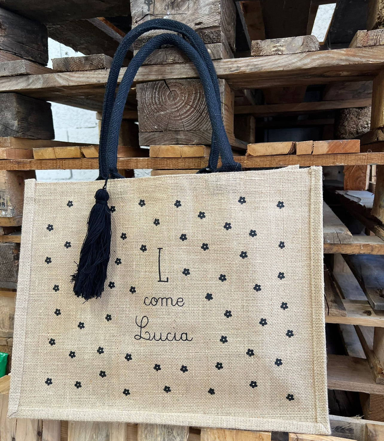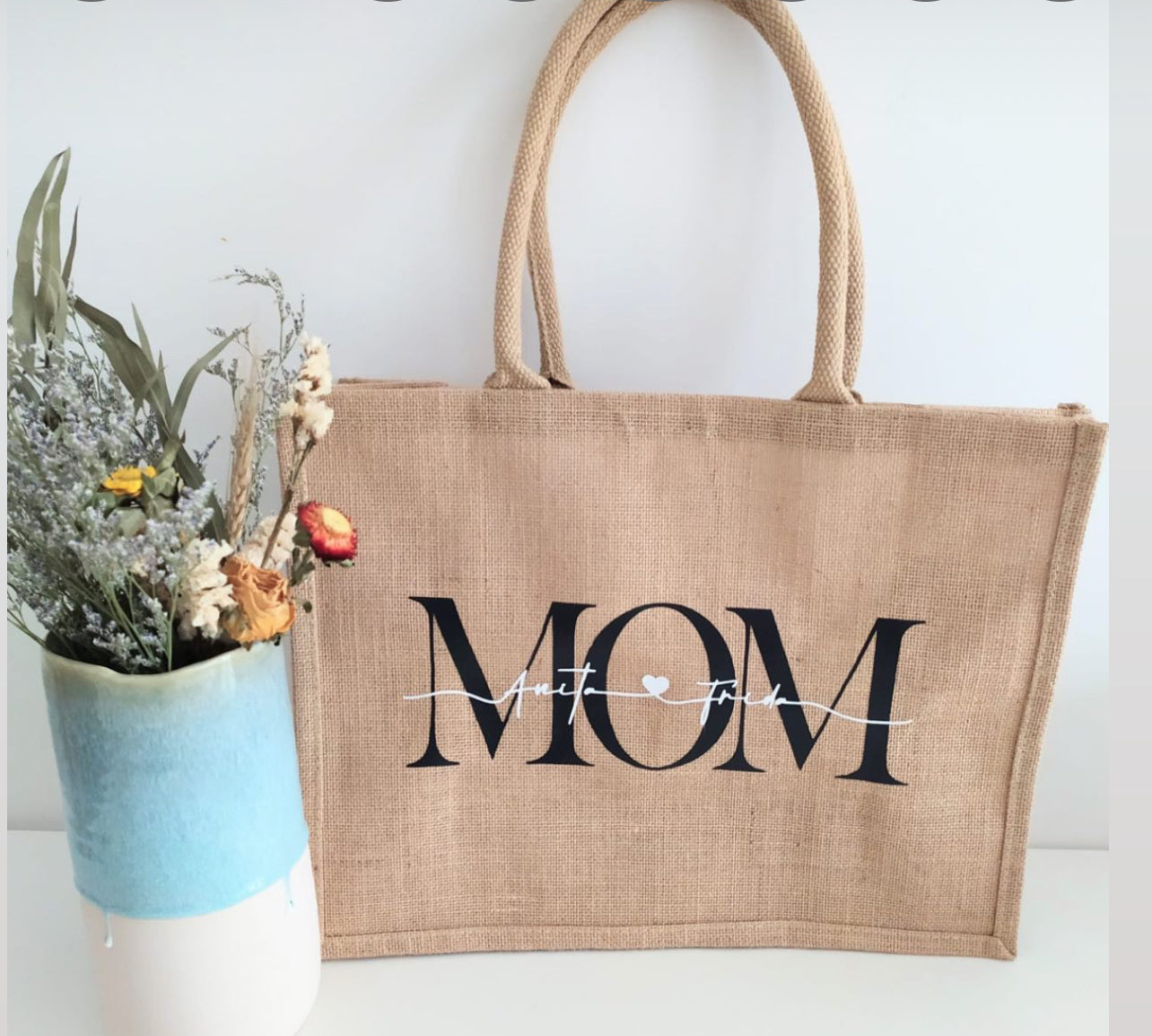 Borsa grande in iuta personalizzata Mamma con stampa.