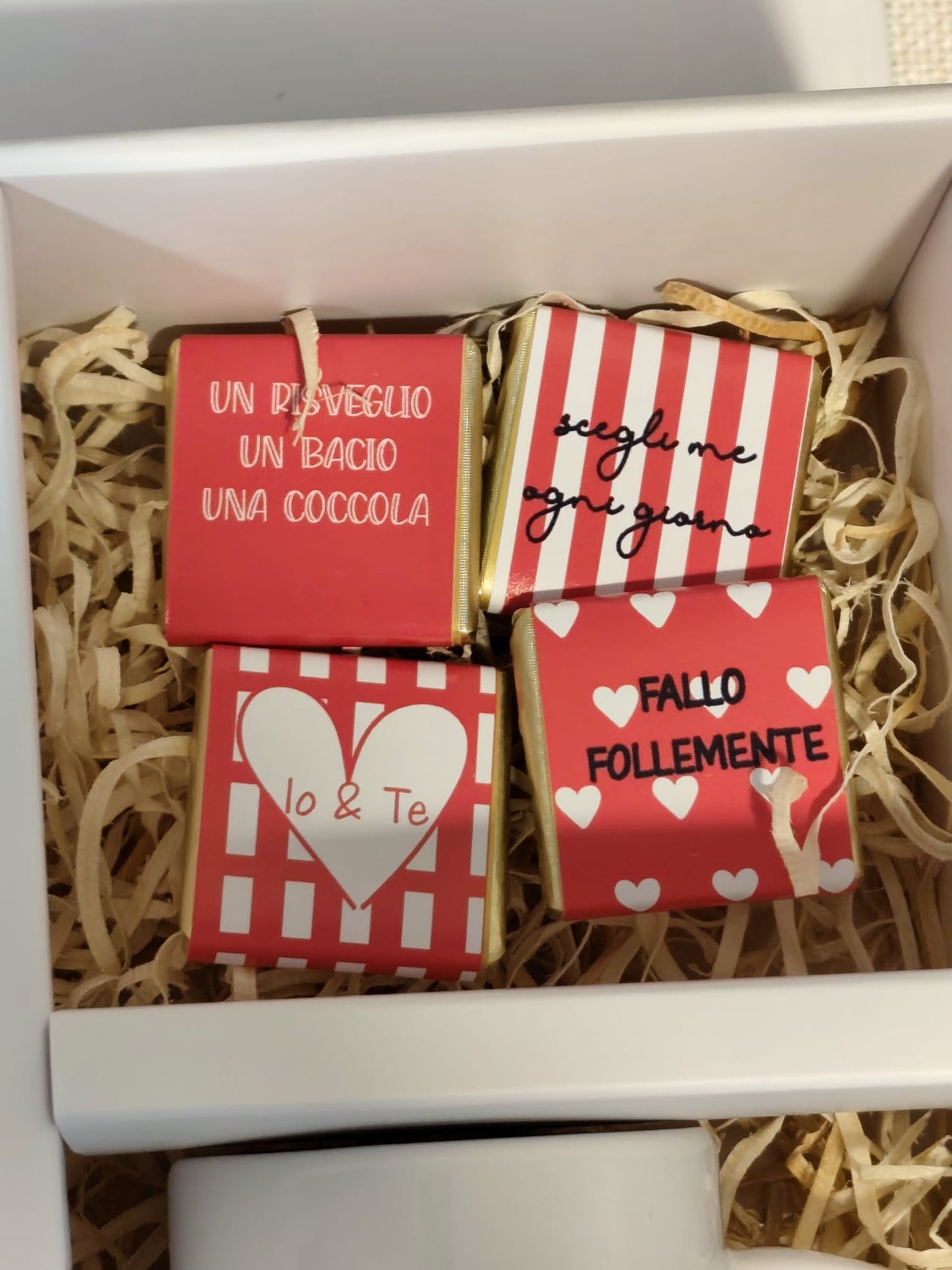 Le frasi sui cioccolatini non posso essere modificate o cambiate, scrivere in personalizzazione le iniziali per la tazzina