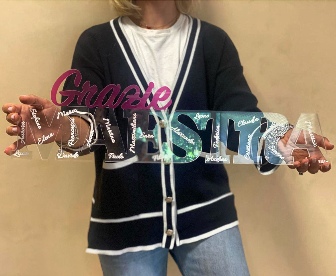 Scritta Maestra in Plexiglass personalizzata con nomi