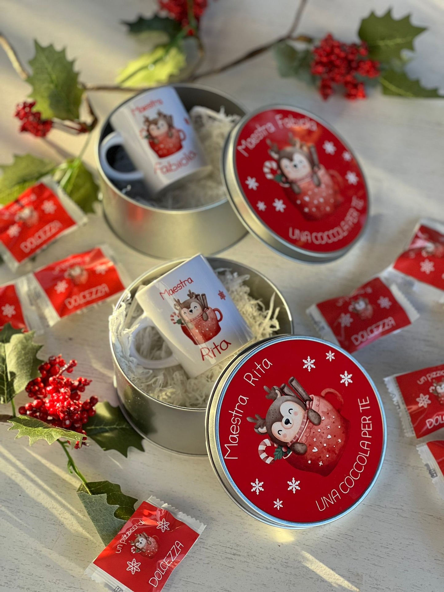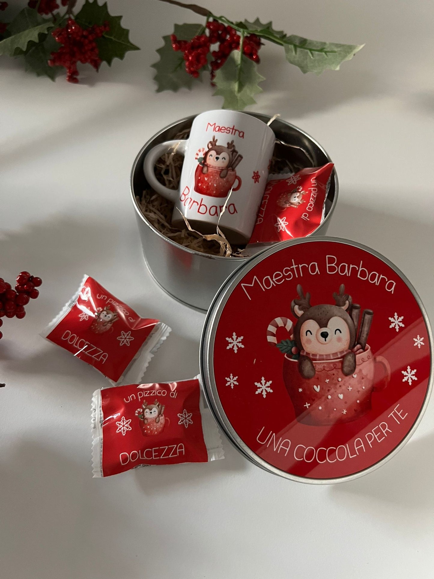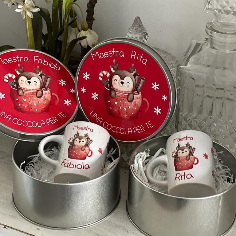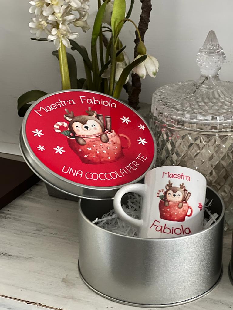 Scatola rotonda in alluminio con tazzina caffè personalizzata
