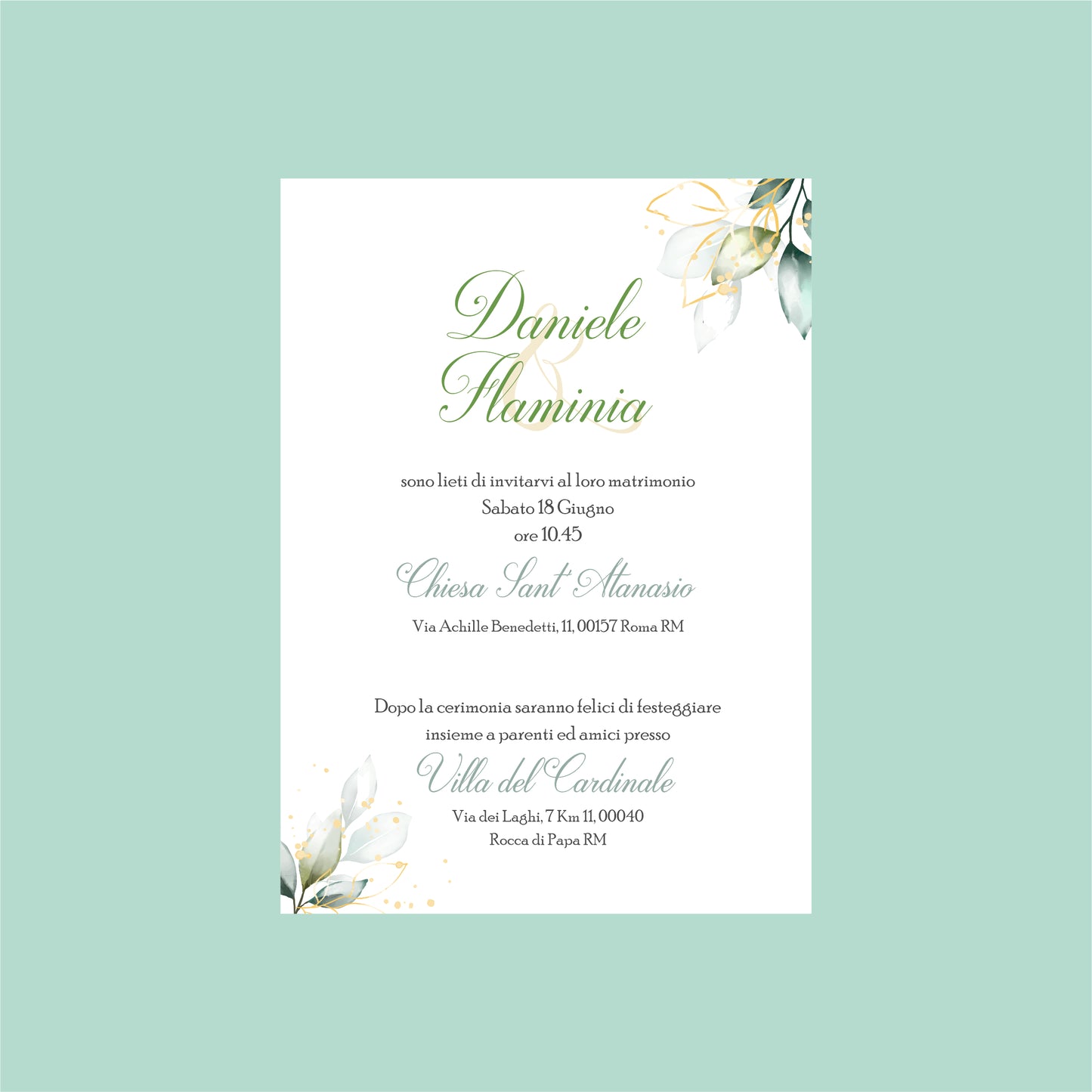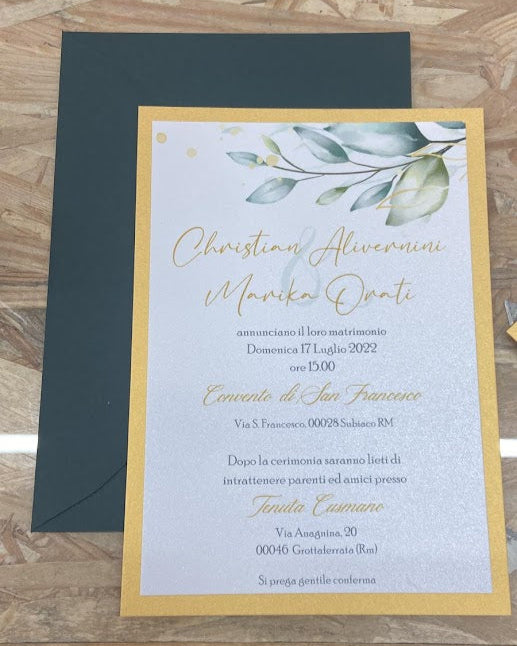 Partecipazione Matrimonio Oro/Verde