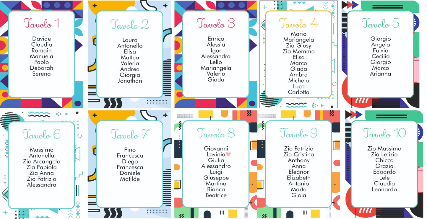 Il tableau è composto solo dai cartoncini personalizzati con i nome degli invitati e la grafica