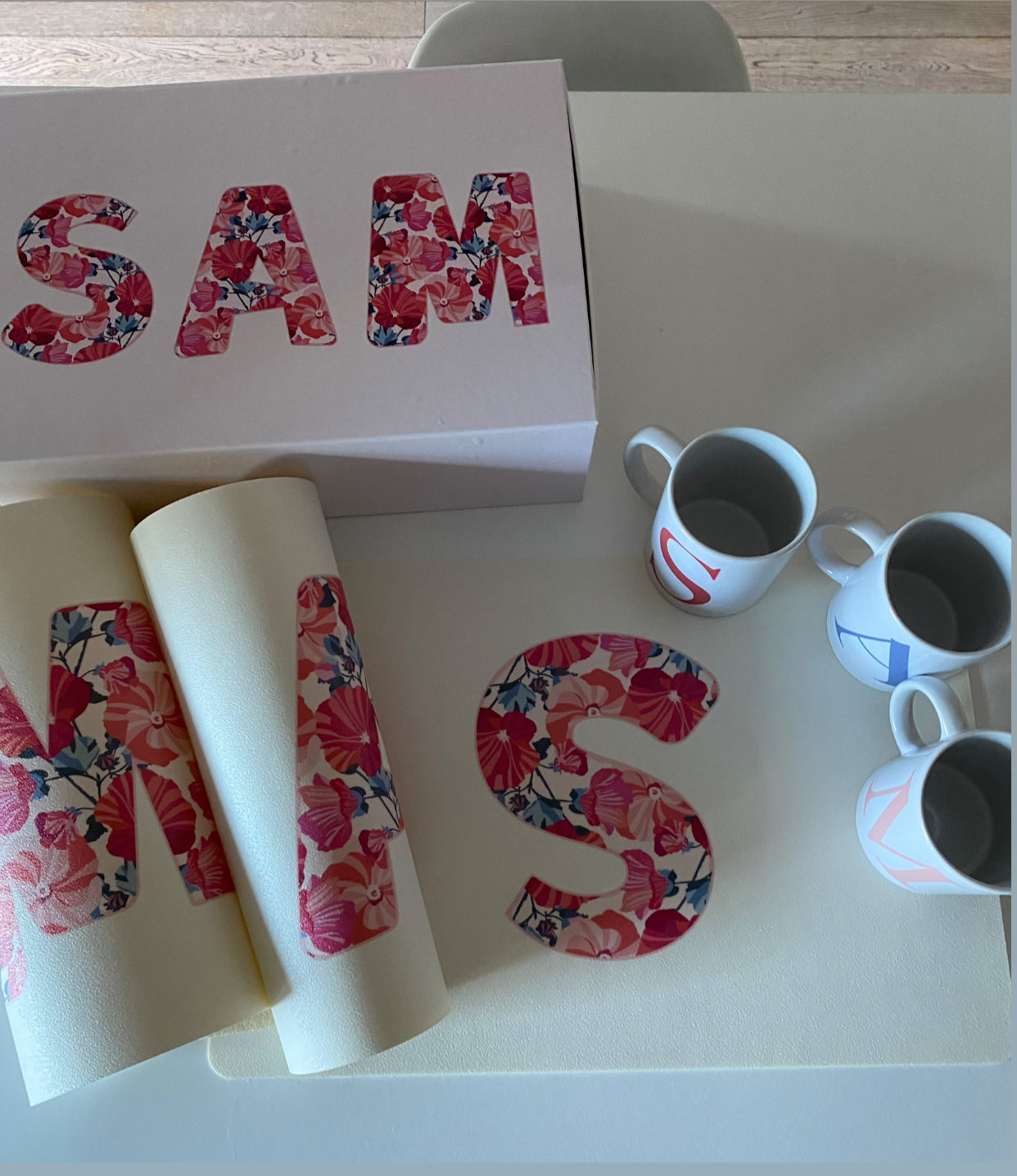 Box tovagliette in canvas e tazze in ceramica personalizzate
